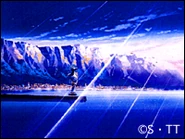 Grava tells Van that he will not take him prisoner but instead wants to put the skill of Escaflowne to the test. A fighter steps into the ring in a brown Guymelef with a spiked ball and chain as its weapon. Allen recognizes him as Sajima, a bounty hunter. Meiden, Grava's advisor, marvels at Escaflowne, but wonders why the King didn’t just ask Allen fight to Van. Grava says that Allen can “wait his turn,” and he wants to see how his way works out. Two more Guymelefs step into the dueling arena. The episode ends on a cliffhanger, with Hitomi having a bad feeling about the coming fight between Van and the three men.
