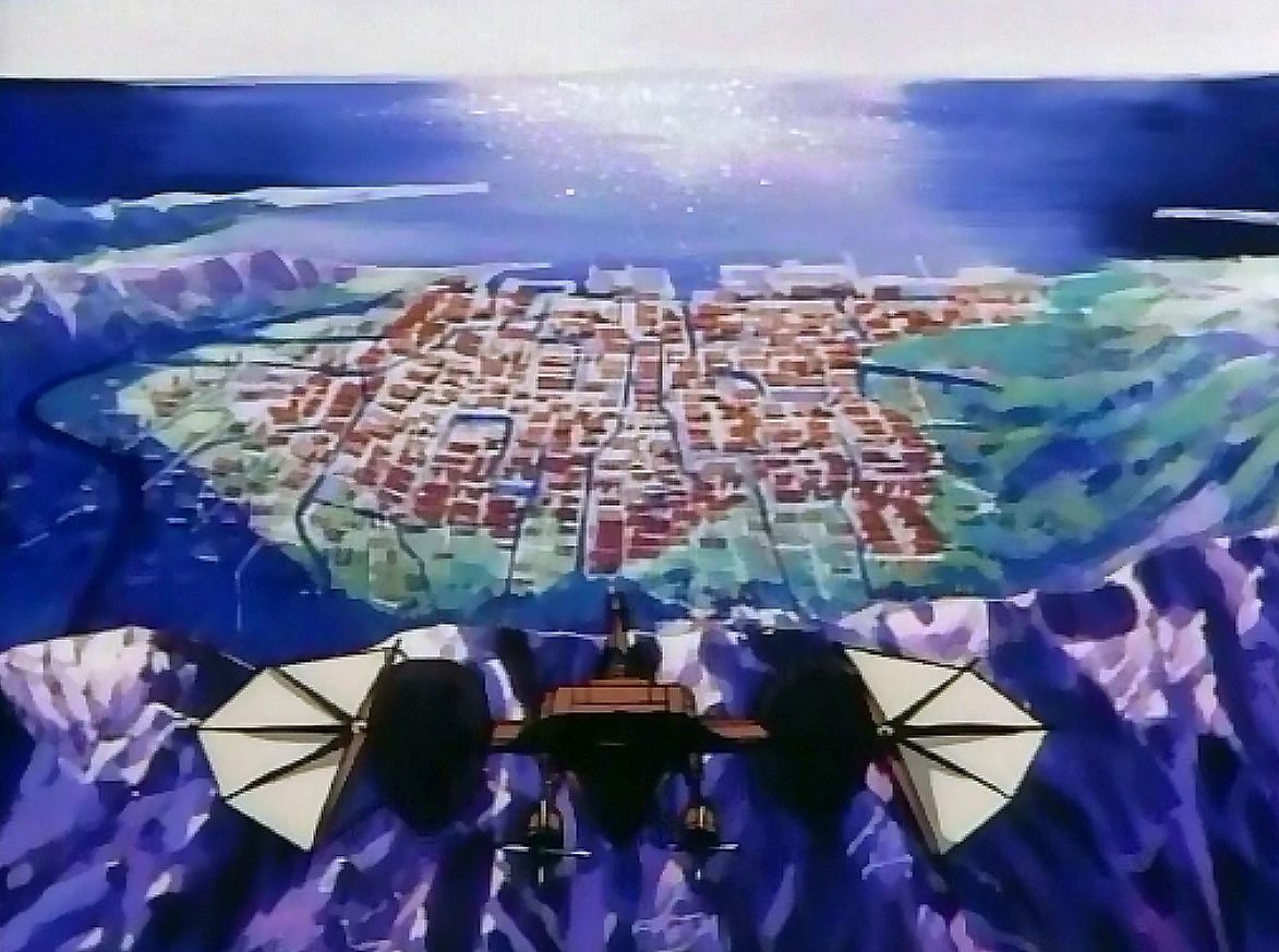 View of Palas from the air. Build into the mountains is a landing area for levi-ships.